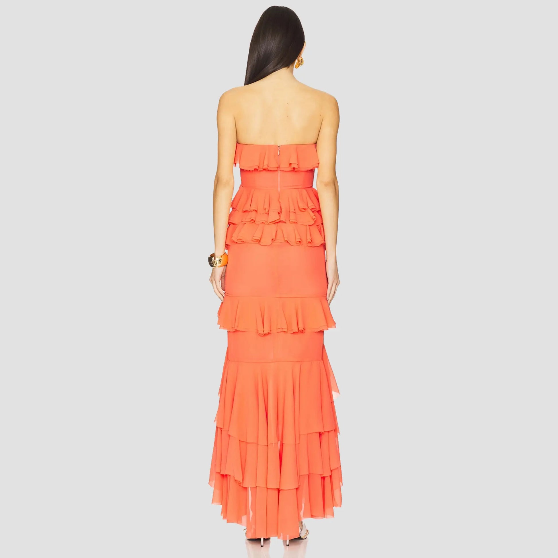 The Oleksandra Gown dances into your wardrobe with midweight georgette that moves effortlessly, featuring a flirty asymmetrical hem and a partially boned bodice that flatters your shape. Playful ruffles cascade throughout, adding a whimsical touch perfect for any celebration. This gown promises to keep you twirling with charm and confidence all night long.